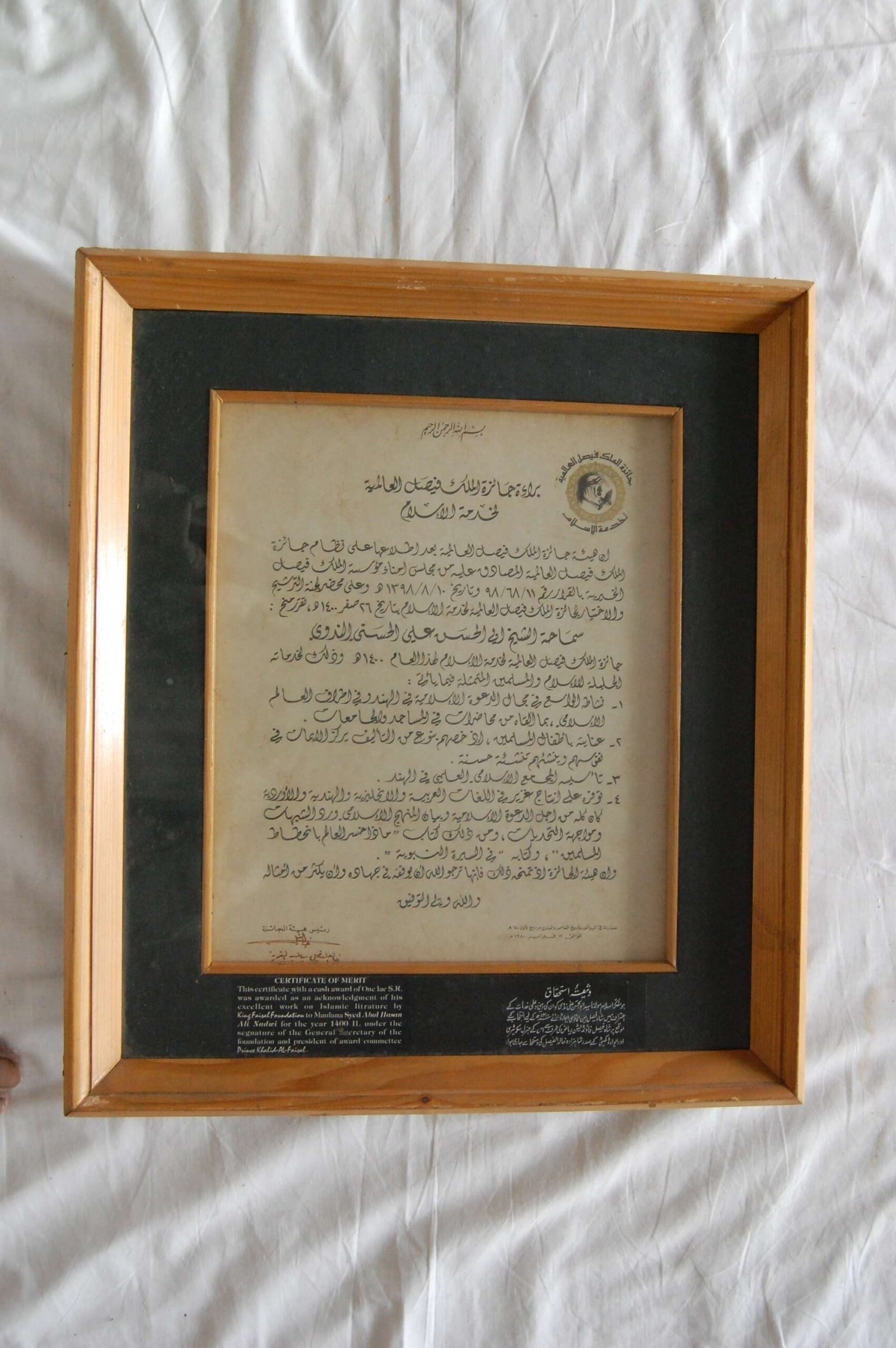 - Certificate of Merit in Islamic Literature